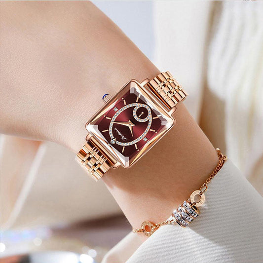 💎Fashion Square Ladies Rose Gold Diamond Watch