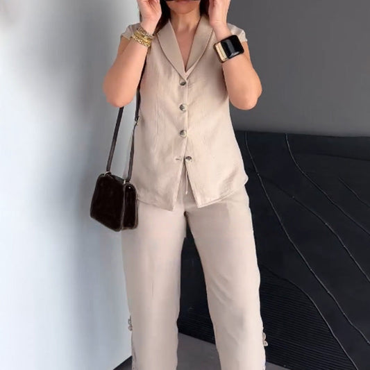 V-Neck Sleeveless Top and Straight-Leg Pants 2-piece suit