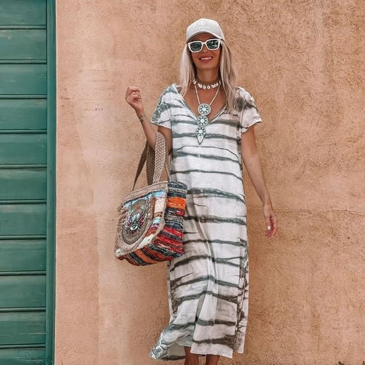 Breathable V-Neck Loose Long Dress(Free Shipping)