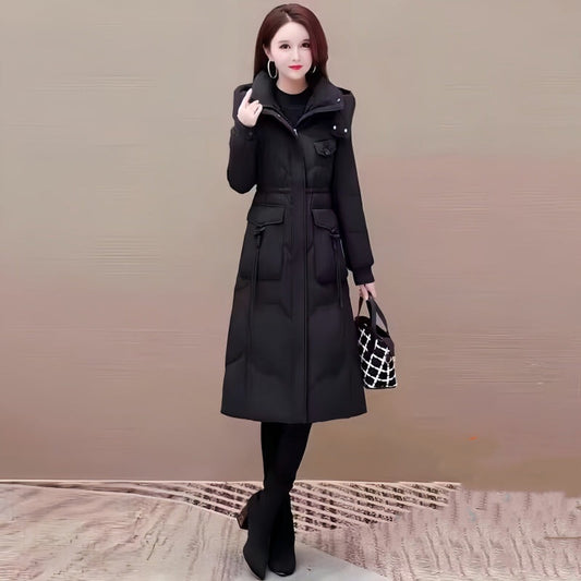 Medium-Length Thickened Hooded Lapel Cotton Coat
