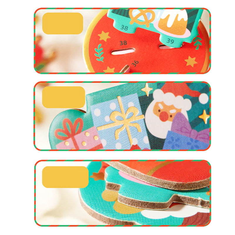 ✨FESTIVE DESIGN AND PREMIUM QUALITY✨The classic Christmas tree shape, adorned with holiday accessories and gold-foil detailing, instantly ignites the festive mood. Numbered parts ensure easy assembly, and thick cardboard pieces provide durability and stability for long-lasting enjoyment.