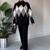 Fashion Color-blocking Rhombus Sweater & Pants Set