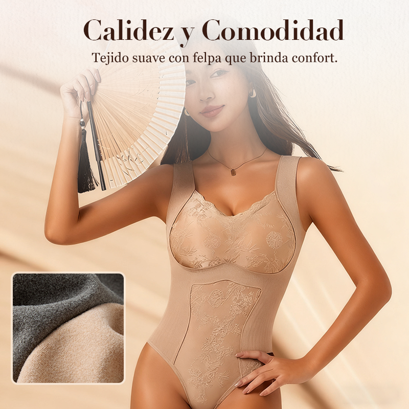 INTEGRATED SUPPORT SYSTEM – Features a built-in bra with non-moving cups, offering comfortable support and secure molding. The cups stay in place, providing a holding effect, preventing sagging and ensuring a smooth and comfortable profile throughout the day.